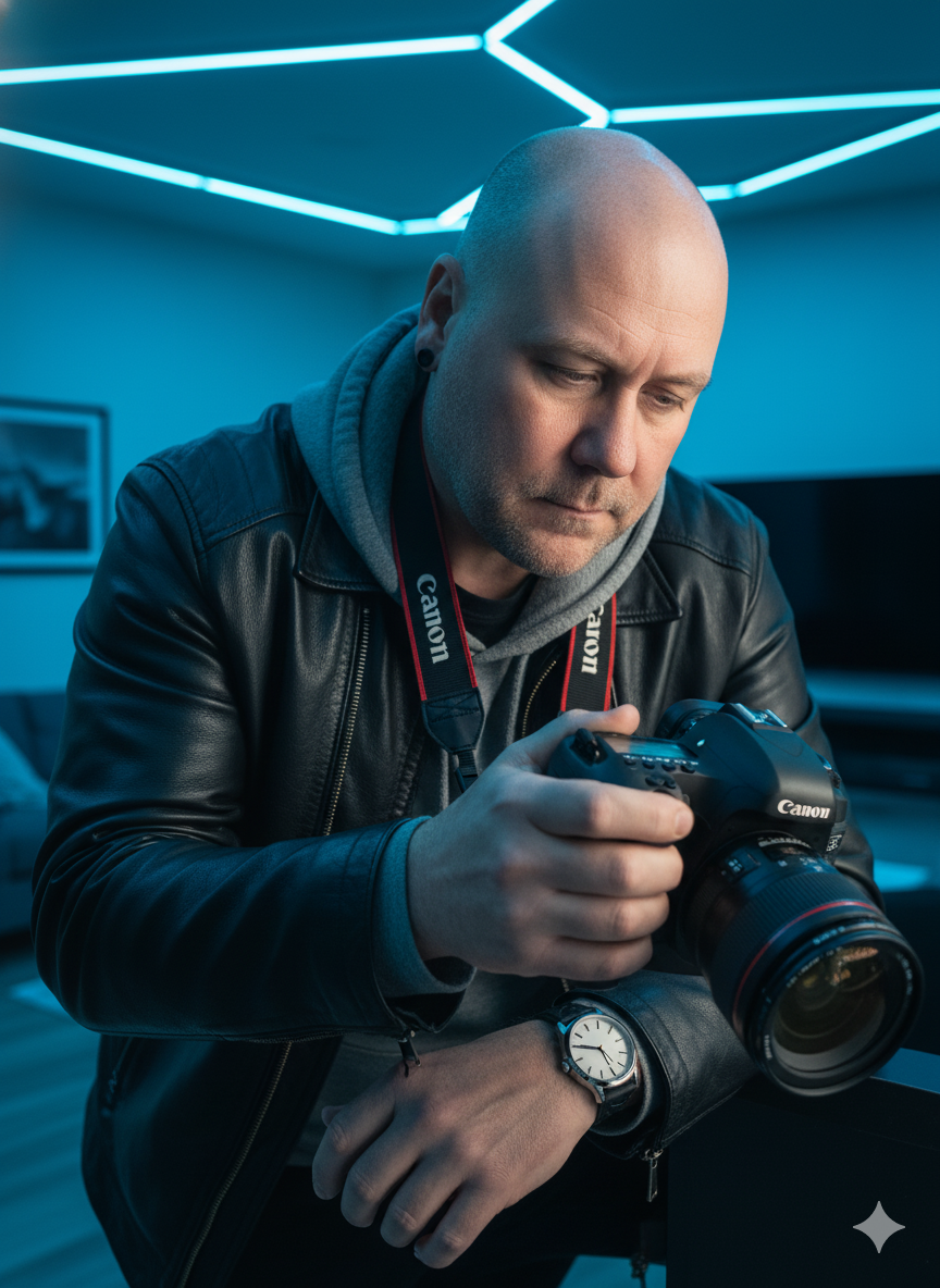 A moody, urban portrait of me standing on a rain-slicked city street at dusk, the wet asphalt reflecting the glow of distant streetlights. I'm wearing an […]