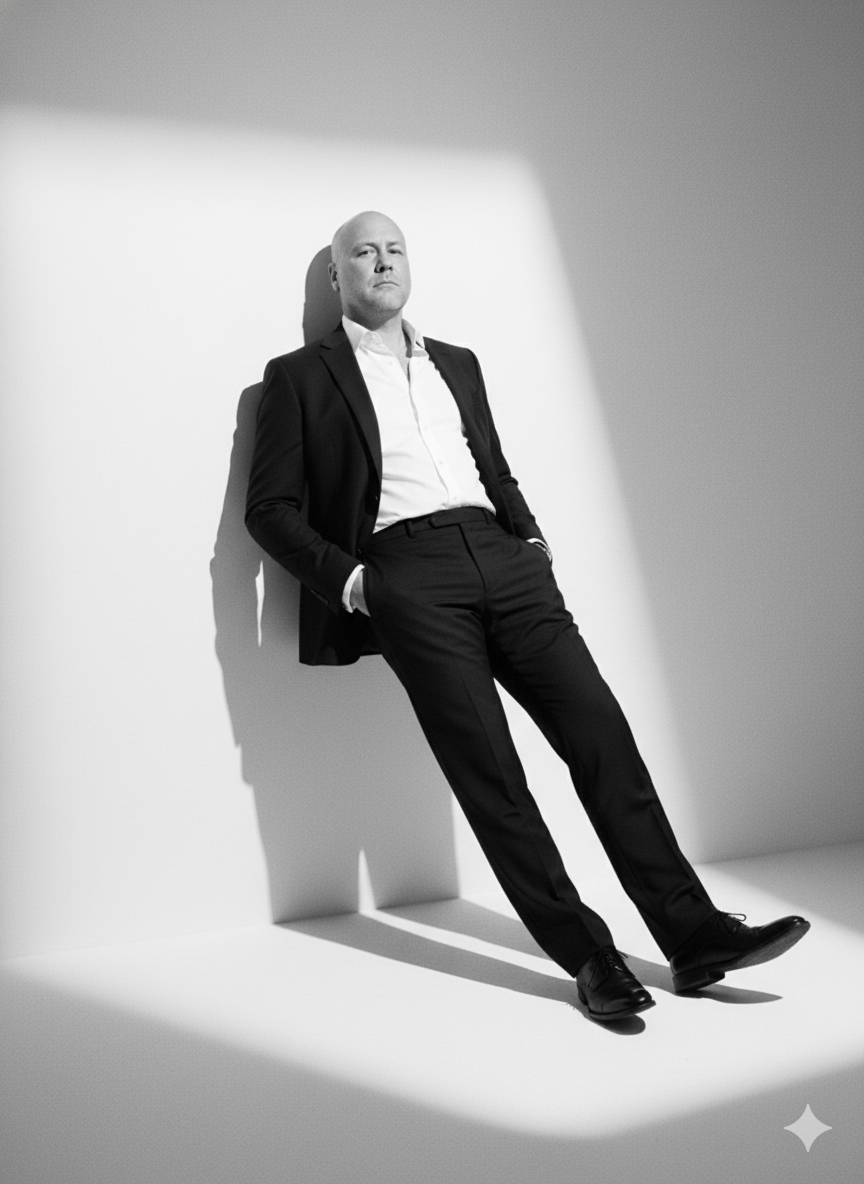 Face unchanged from uploaded image, create an 8K Ultra-Realistic HDR portrait of the same man in a studio setting with a minimal, dark luxury aesthetic. The […]